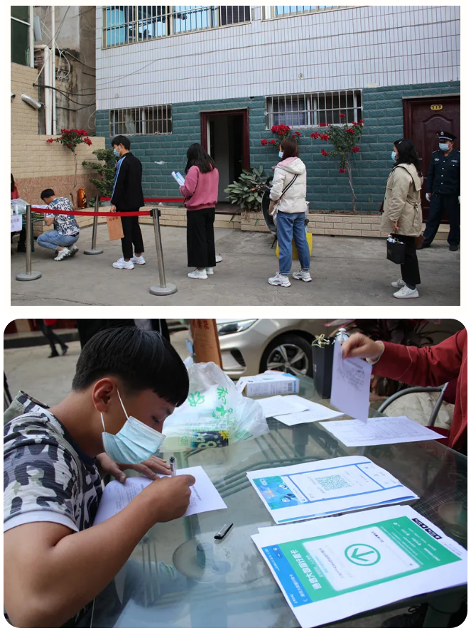 在保衛人員和老師們的引導下,返校同學按預定路線有序來到指定地點,首先接受體溫初測并登記,在確保體溫正常的情況下,再來到指定報道點,按照排隊間隔 1 米以上的要求,有序報道注冊。學生們經過再次體溫復測,出示健康碼、行程碼、健康卡,現場確認并完善學生健康狀況及出行軌跡記錄表等返校報到的相關信息填寫,領取疫情防控宣傳資料。一切手續辦理完畢,學生們在老師和同學的幫助下,搬運行李,整理床鋪,做好新學期相關準備。師生們春節后再次相逢,彼此問寒問暖,倍感學院大家庭的溫暖。