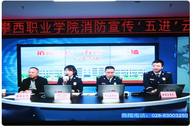 為進一步學習校園消防安全知識,增強師生安全意識,規范用電、用火等安全行為,2021年4月1日下午15.00至16.30時,攀西職院組織部分師生在二實訓樓階梯教室收看四川省消防宣傳“五進”云直播第四場——學校專場云直播。