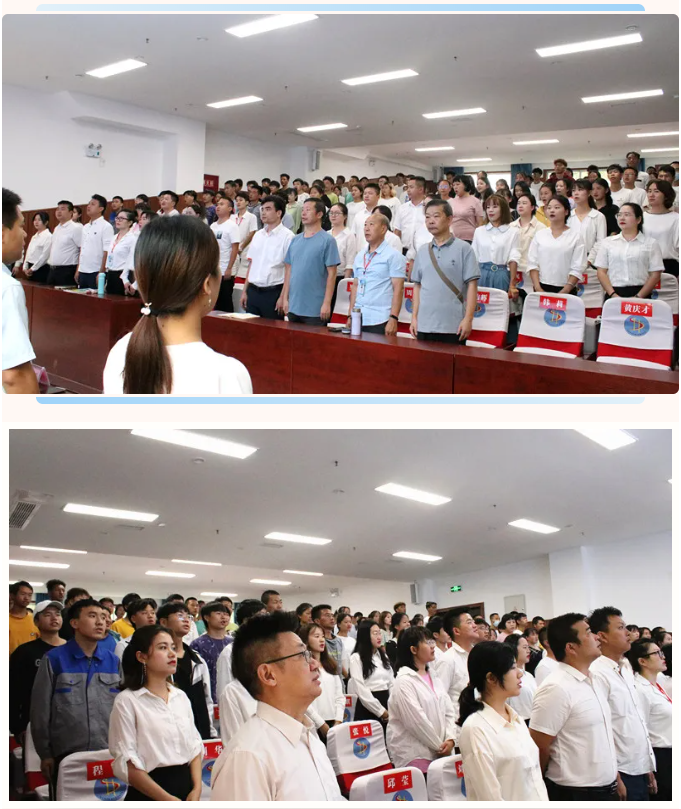 學(xué)院組織人事處副處長馬小林帶領(lǐng)全體教師宣誓,“忠誠人民教育事業(yè),履行教師職責(zé),敬業(yè)愛生,教書育人,為人師表,做有理想信念、有道德情操、有扎實學(xué)識、有仁愛之心的好老師,努力促進(jìn)學(xué)生全面發(fā)展,為培養(yǎng)具有創(chuàng)新精神和實踐能力的應(yīng)用型人才而不懈奮斗! ” 鏗鏘有力的誓言代表著全體教師努力的決心,也激勵著全體教師獻(xiàn)身黨的教育事業(yè),不忘初心,砥礪奮進(jìn)。