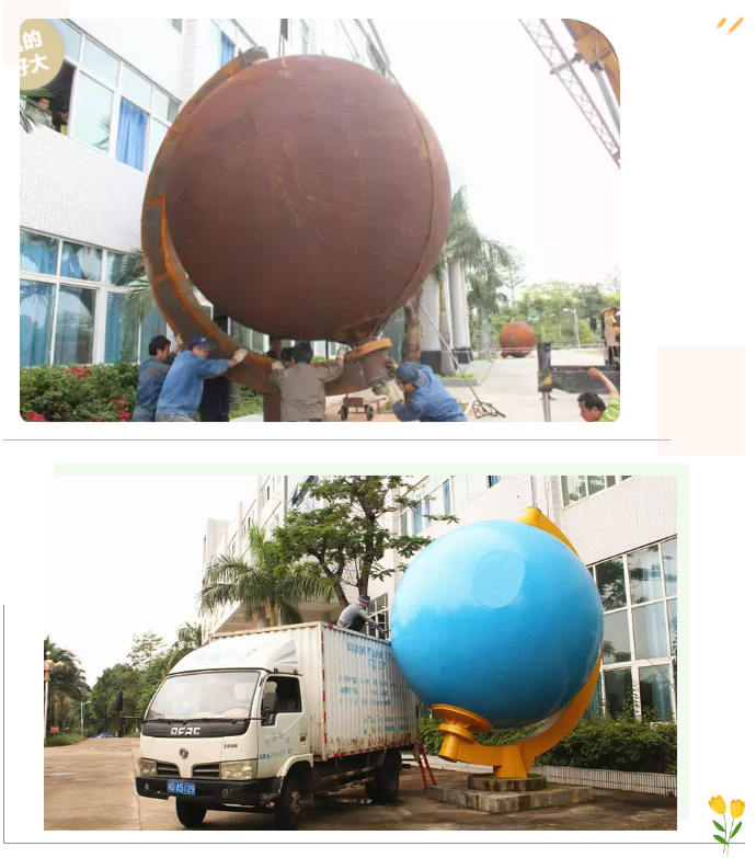 美麗、壯觀的地球儀單個重量達8噸多,從開始制作到完工動用了不少大型機械,是繼學院大門后校園內出現的又一新地標,也為學院再次增加又一網紅打卡點。