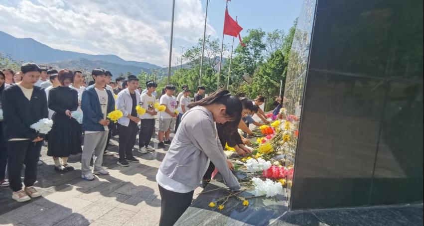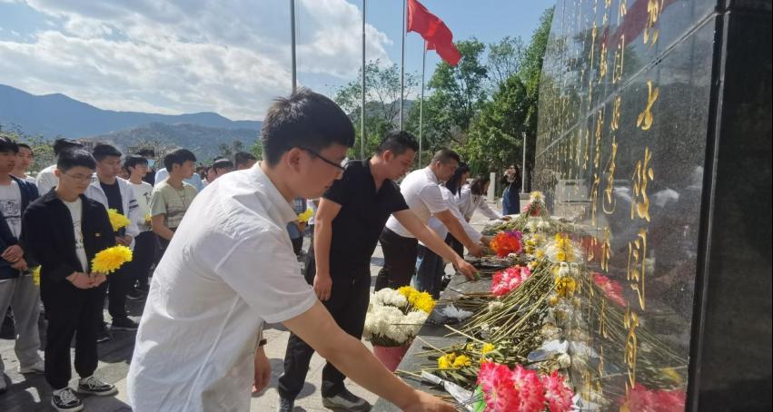 隨后,全體師生依次向烈士紀(jì)念碑敬獻(xiàn)鮮花,并在工作人員的帶領(lǐng)下,走進(jìn)烈士墓園。