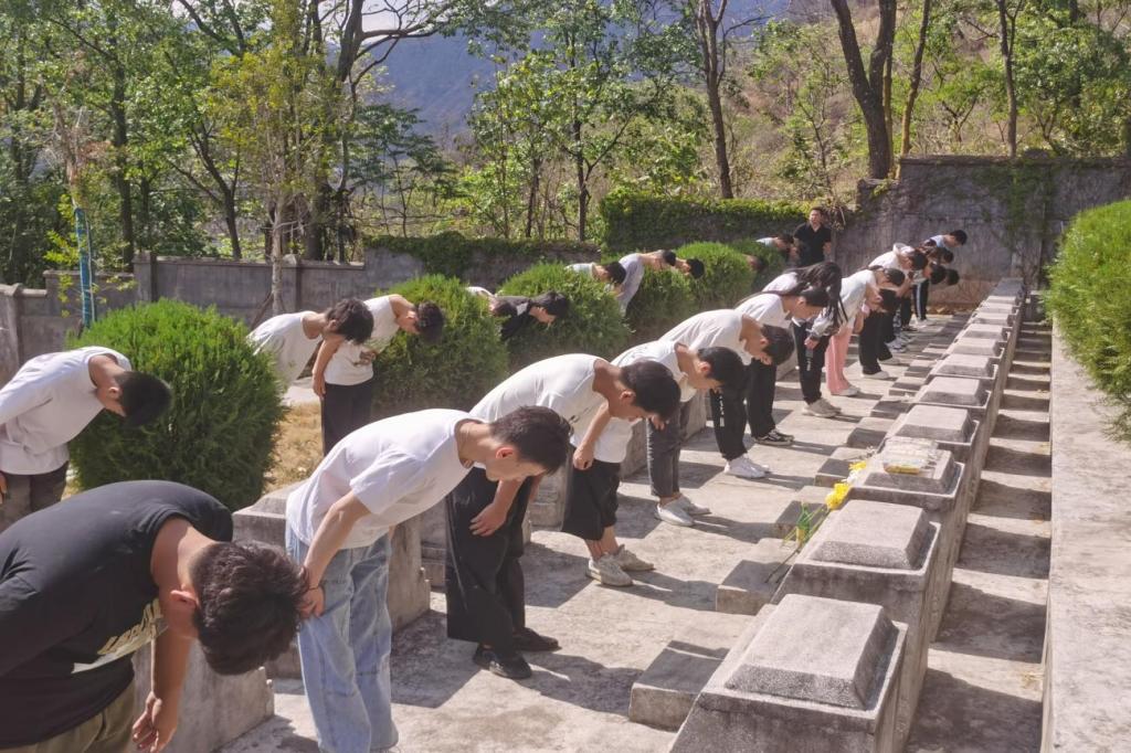 這里長(zhǎng)眠著二百五十多位最可敬的人,有為建成昆鐵路而光榮犧牲鐵道兵戰(zhàn)士,有為保衛(wèi)新生的紅色政權(quán)為平叛清匪以身報(bào)國(guó)的民兵戰(zhàn)士以及其他無(wú)名烈士。他們最小的年僅16歲,他們皆為熱血青年和當(dāng)代軍人,為了人民的解放事業(yè),為祖國(guó)的經(jīng)濟(jì)建設(shè)為人民的幸福生活而獻(xiàn)出生命。聆聽(tīng)著烈士們的英雄事跡,同學(xué)們向烈士三鞠躬,向革命先烈表達(dá)無(wú)限哀思和敬仰之情。