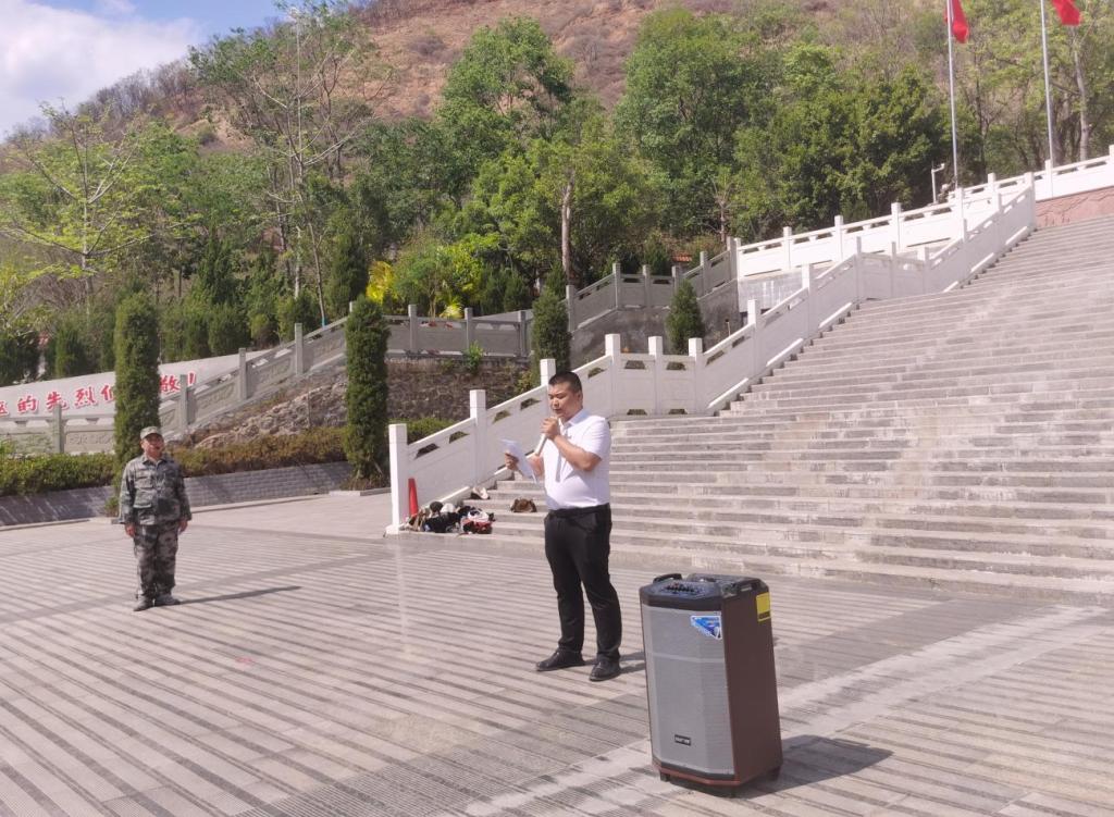 巍巍靈官山,滔滔安寧河。米易縣烈士陵園內(nèi)翠柏掩映,郁郁蔥蔥,在莊嚴(yán)肅立英雄紀(jì)念碑下,全體師生整齊列隊(duì),神情肅穆,靜靜等待活動(dòng)開(kāi)始。下午3時(shí)30分,活動(dòng)開(kāi)始,全體師生奏唱團(tuán)歌,向烈士紀(jì)念碑肅立默哀,團(tuán)委書(shū)記劉興科同志宣讀祭文。