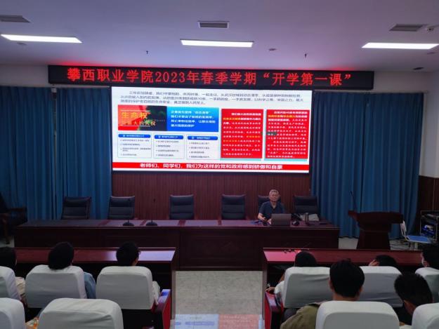 新學期、新氣象。攀西職院2023年春季學期以“向往美好 勇毅前行”為主題的“開學第一課”于3月28日在實訓樓二樓階梯教室開展,攀西職院全體學生參會,省督導專員、學院書記萬輝君主講。