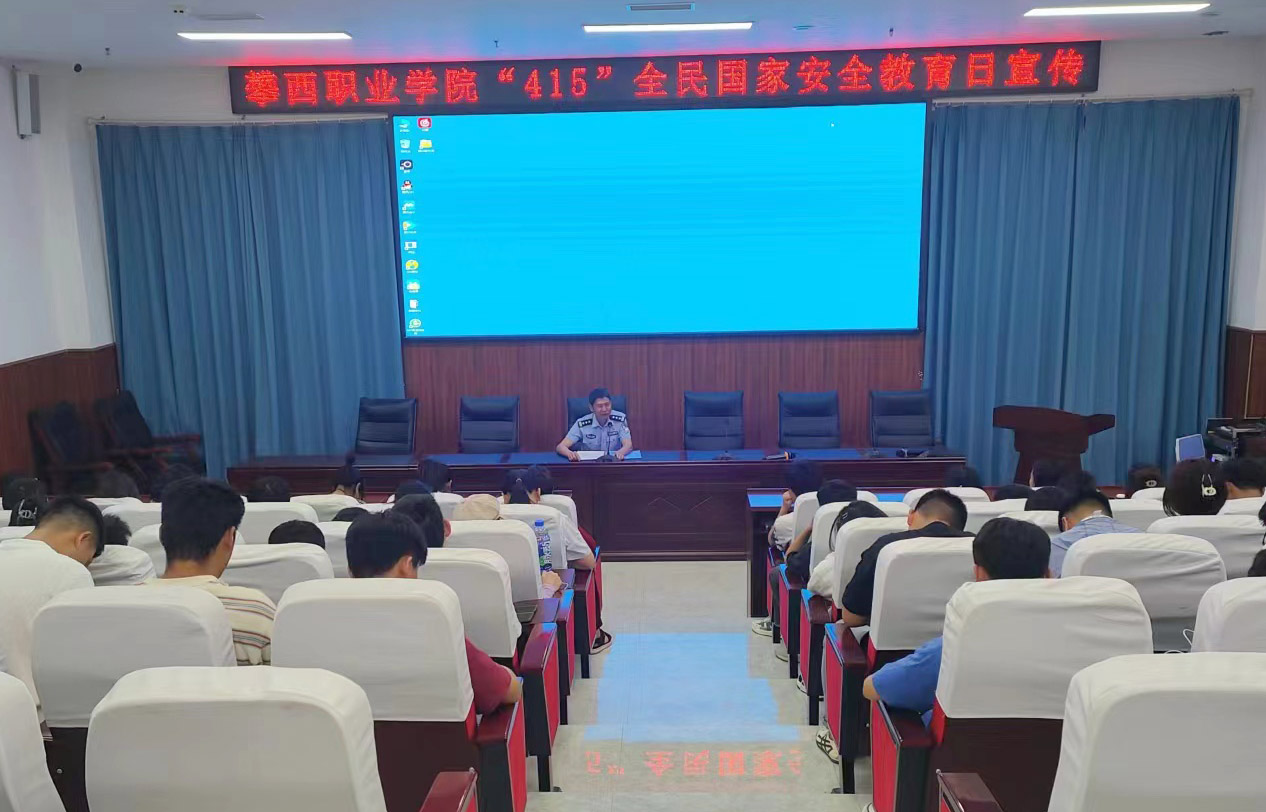 米易縣具公安局政保大隊教導員邱前福通過安全教育海報、視頻展示,結合相關案例向師生們講解了國家安全的概念、內容、相關法律法規,要求師生堅決維護國家安全,樹立牢固的法治意識。