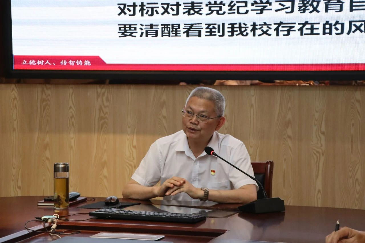 萬輝君以“強(qiáng)化黨紀(jì)學(xué)習(xí),筑牢黨性根基,為推進(jìn)學(xué)校高質(zhì)量發(fā)展提供堅(jiān)強(qiáng)紀(jì)律保障”為題,從“談?wù)J識(shí)體會(huì)”“找風(fēng)險(xiǎn)隱患”“提改進(jìn)措施”等三個(gè)方面,緊密聯(lián)系學(xué)校實(shí)際,作了全面系統(tǒng)和深入淺出的講解輔導(dǎo),為與會(huì)黨員干部上了一堂生動(dòng)深刻的紀(jì)律黨課。