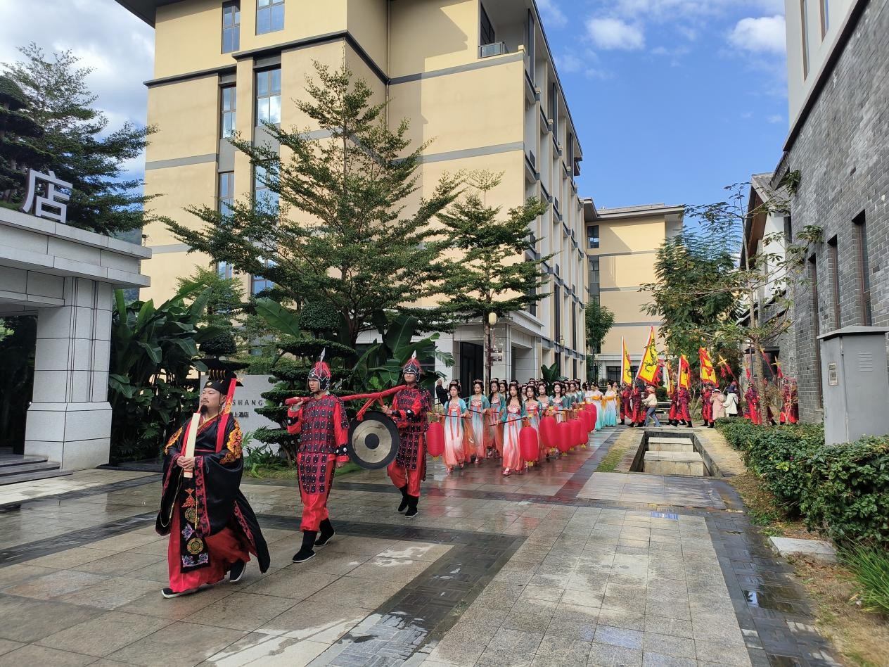 全國各地康養領域的專家、學者及來自各企業、協會的嘉賓代表在學生扮演的古人帶領下,領略迷昜古城各處風采。表演者的一聲聲“國泰民安,風調雨順,五谷豐登,六畜興旺”寓意著國家安定和平,人民生活安居樂業,國家太平無事,社會和諧安定,人民生活幸福。