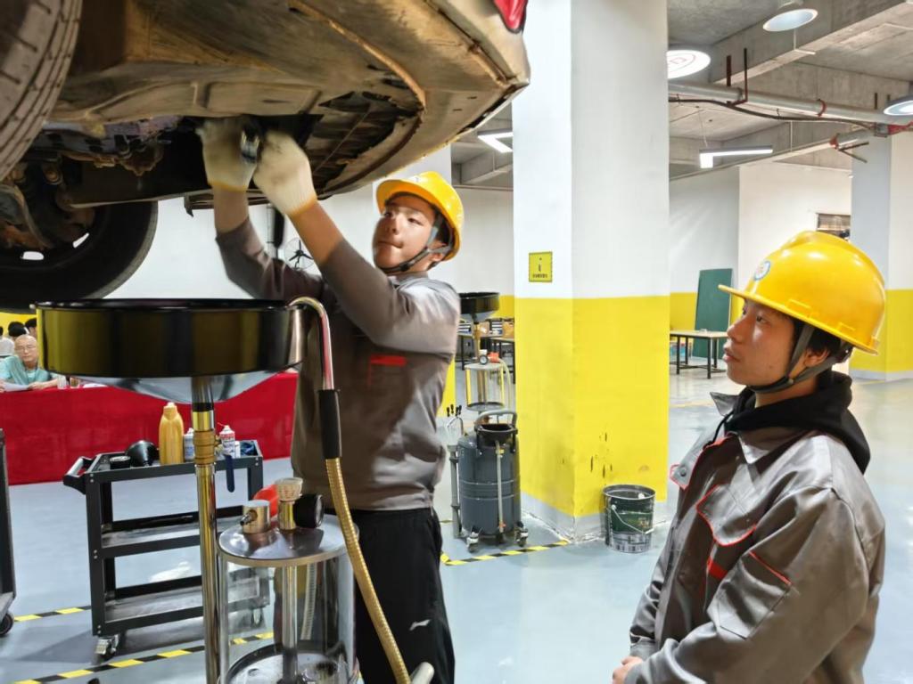 此次大賽以汽車(chē)維修與保養(yǎng)的實(shí)際工作任務(wù)為競(jìng)賽內(nèi)容,全面考核學(xué)生的故障診斷、零部件更換、車(chē)輛保養(yǎng)等多方面能力。在比賽過(guò)程中,學(xué)生們不僅展現(xiàn)出了過(guò)硬的專業(yè)本領(lǐng),還體現(xiàn)出了良好的團(tuán)隊(duì)協(xié)作精神和應(yīng)變能力。他們冷靜思考、靈活應(yīng)對(duì),展現(xiàn)出了優(yōu)秀的職業(yè)素養(yǎng)。