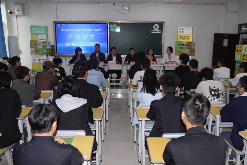 10月28日上午,攀枝花市2025年求職能力實(shí)訓(xùn)營(yíng)第二期開(kāi)班儀式在攀枝花攀西職業(yè)學(xué)院隆重舉行。本次實(shí)訓(xùn)營(yíng)由攀枝花市人力資源和社會(huì)保障局、攀枝花攀西職業(yè)學(xué)院共同主辦,攀枝花市就業(yè)創(chuàng)業(yè)促進(jìn)中心、米易縣就業(yè)創(chuàng)業(yè)促進(jìn)中心承辦。這項(xiàng)公益性培訓(xùn)活動(dòng),旨在幫助我校應(yīng)屆畢業(yè)生提升求職技能,增強(qiáng)就業(yè)信心。其培訓(xùn)內(nèi)容涵蓋簡(jiǎn)歷優(yōu)化、面試技巧、職業(yè)規(guī)劃、專場(chǎng)招聘會(huì)等,助力學(xué)員一站式解決求職難題。攀枝花市米易縣就業(yè)創(chuàng)業(yè)促進(jìn)中心主任帥兵出席,學(xué)校相關(guān)領(lǐng)導(dǎo)和相關(guān)部門(mén)負(fù)責(zé)人、主講老師、相關(guān)工作人員,以及34名參訓(xùn)學(xué)員共同見(jiàn)證開(kāi)班儀式。