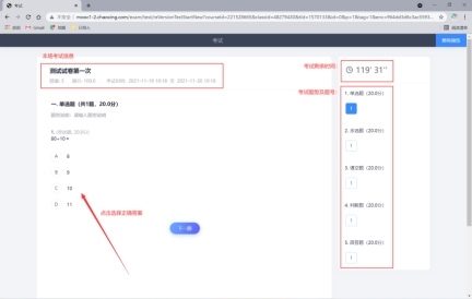 ⑤閱讀答題時長、題量說明、考試說明等考試信息,勾選【我已閱讀并同意】,并點擊【開始考試】;