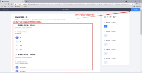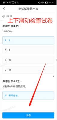 ⑨答題結束可以上下滑動,檢查整個試卷的答題情況,檢查結束點擊【交卷】。