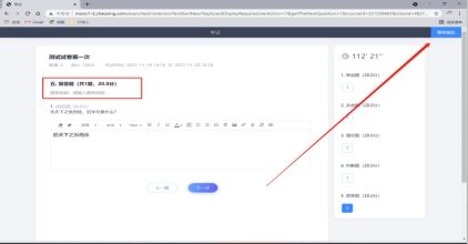 ⑨考試結束可以檢查整個試卷的答題情況---檢查結束點擊【交卷】。