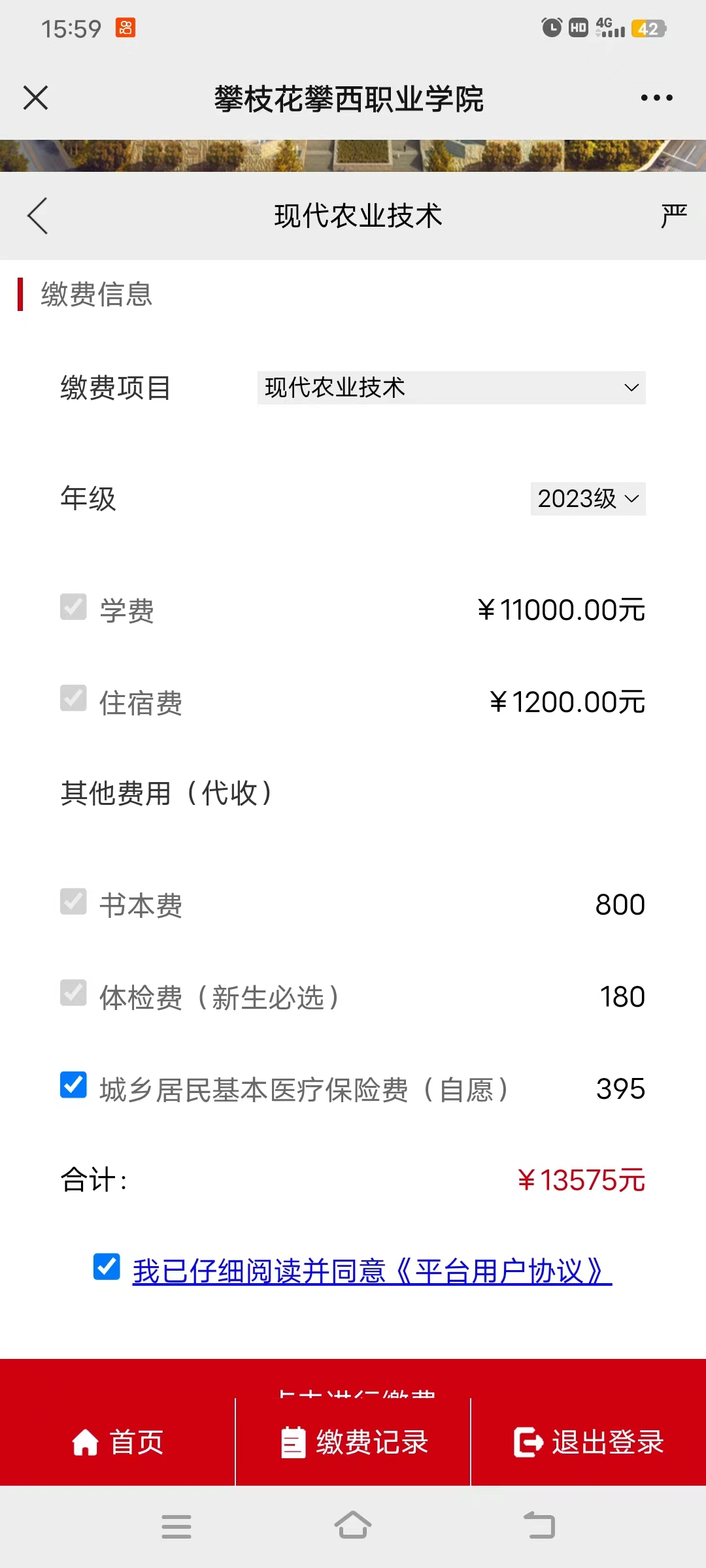 攀枝花攀西職業學院2023級收費標準及代收項目費用
