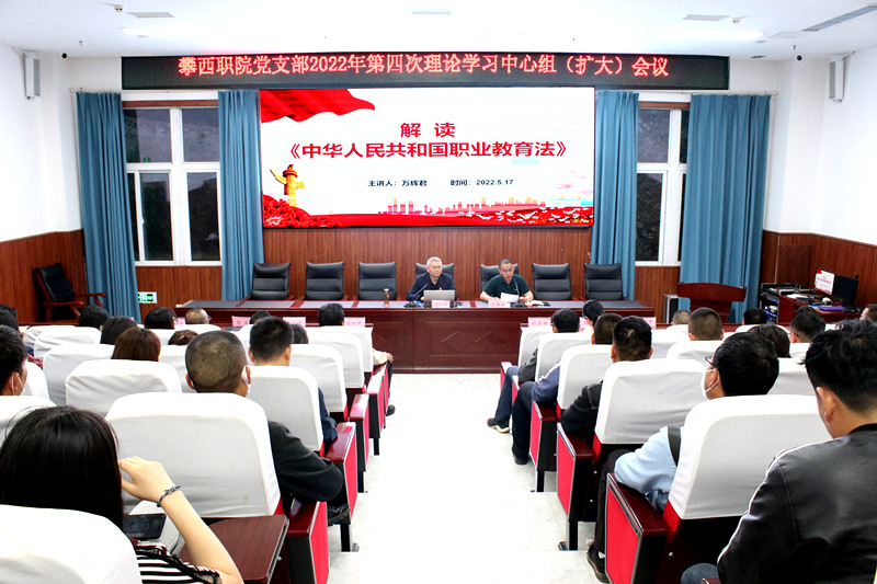 5月17日晚上7點半,攀枝花攀西職業學院在二實訓樓階梯教室召開2022年第4次理論學習中心組(擴大)學習會。集中學習習近平總書記在中國人民大學考察時的重要講話精神、在慶祝中國共產主義青年團成立100周年大會上的重要講話精神以及中共中央政治局常務委員會5月5日會議精神和新修訂的《中華人民共和國職業教育法》。學院理事長張家華,學院黨支部書記、省教育督導專員萬輝君教授,學院黨支部副書記、執行院長趙海林,副院長李玉德、周再玉出席學習會。攀西職業學院、華森職業學校、綜合高級中學、魯班培訓學校全體教職員工以及華森公司全體中層領導干部及機關全體員工參加學習會。學院黨支部副書記、執行院長趙海林主持會議并講話。