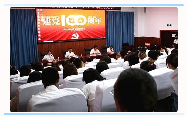 2021年是中國共產黨成立100周年,中央決定在全黨深入開展黨史學習教育。按照省委教育工委的安排部署,2021年5月18日下午,攀西職院在二實訓樓階梯教室召開黨史學習教育動員大會,學院理事長張家華,副理事長、執行院長趙海林,副院長周再玉出席大會,學院全體共產黨員,中層以上干部,全體教職員工參加大會。副院長周再玉主持會議。