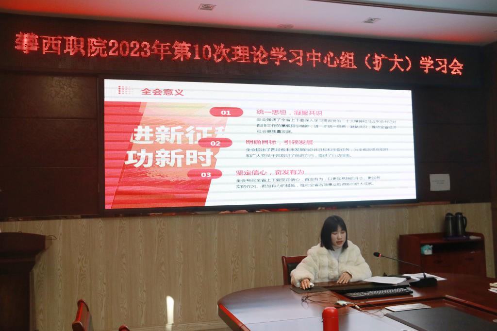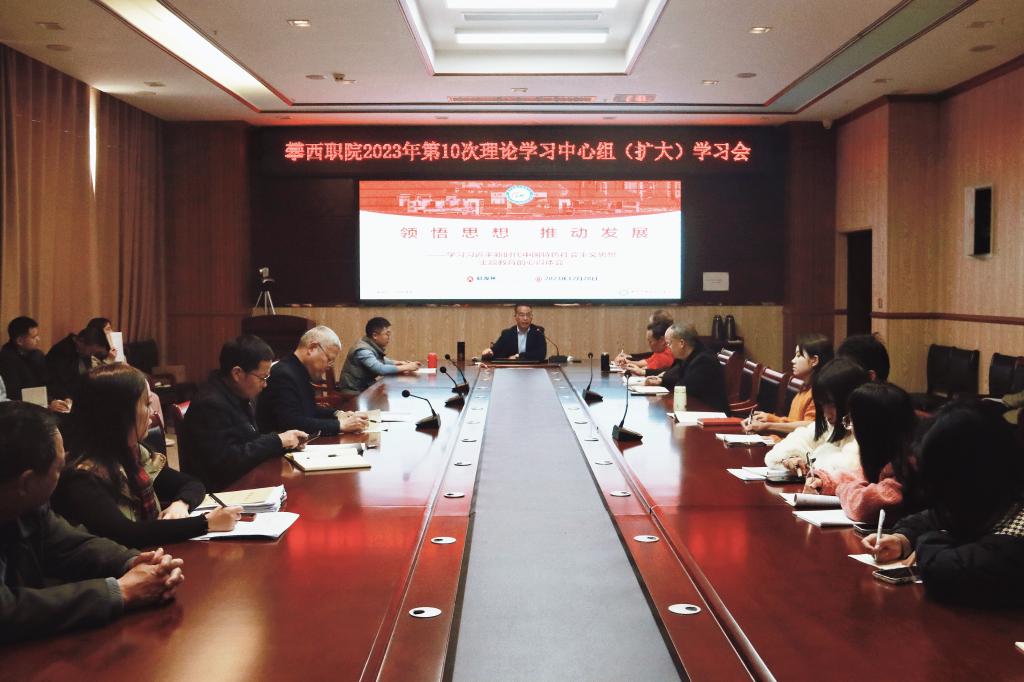12月28日下午,攀枝花攀西職業學院在二實訓樓四樓會議室召開2023年第10次理論學習中心組(擴大)學習會。學校書記、省督導專員萬輝君主持會議,副書記兼執行院長趙海林、副院長李玉德以及學校全體教職工參加學習會。