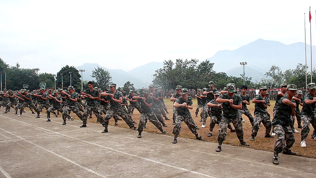 升旗完畢,軍訓匯報表演開始。在教官的引領(lǐng)下,同學們分別展示了女子匕首操、男子軍體拳,以此匯報他們的軍訓成果。他們的口號如雷貫耳,他們的動作整齊利落,展現(xiàn)出我校青年朝氣蓬勃的風采。