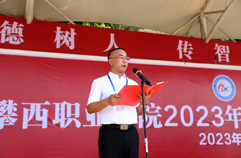 9月15日下午3點(diǎn),攀枝花攀西職業(yè)學(xué)院在運(yùn)動(dòng)場(chǎng)召開(kāi)2023級(jí)新生開(kāi)學(xué)典禮暨軍訓(xùn)動(dòng)員大會(huì)。學(xué)院執(zhí)行院長(zhǎng)趙海林、副院長(zhǎng)李玉德、米易縣人民武裝部中校稅雪飛出席會(huì)議,各系部主任、相關(guān)教師、全體2023級(jí)新生參加大會(huì),副院長(zhǎng)潘吉平主持大會(huì)。