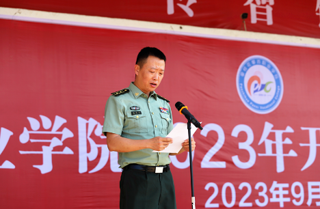 趙海林在致辭中對(duì)2023級(jí)全體新生表示最熱烈的祝賀和最誠(chéng)摯的歡迎,向承擔(dān)軍訓(xùn)任務(wù)的全體教官表示最衷心的感謝!他介紹了學(xué)院的辦學(xué)目標(biāo),表示一定以學(xué)生發(fā)展為中心,引導(dǎo)學(xué)生以新時(shí)代思想武裝智慧思維、以辛勤勞動(dòng)創(chuàng)造幸福生活、以家國(guó)情懷成就美麗人生!