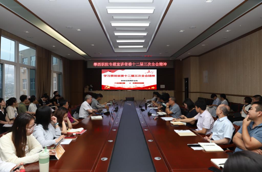 8月27日,攀枝花攀西職業(yè)學(xué)院學(xué)院書記、省督導(dǎo)專員萬輝君教授在二實(shí)訓(xùn)樓四樓會議室主持召開專題學(xué)習(xí)會,并作省委十二屆三次全會精神專題宣講。學(xué)院副書記、執(zhí)行院長趙海林,學(xué)院副院長李玉德、潘吉平出席會議,學(xué)院全體教職工參加學(xué)習(xí)會。