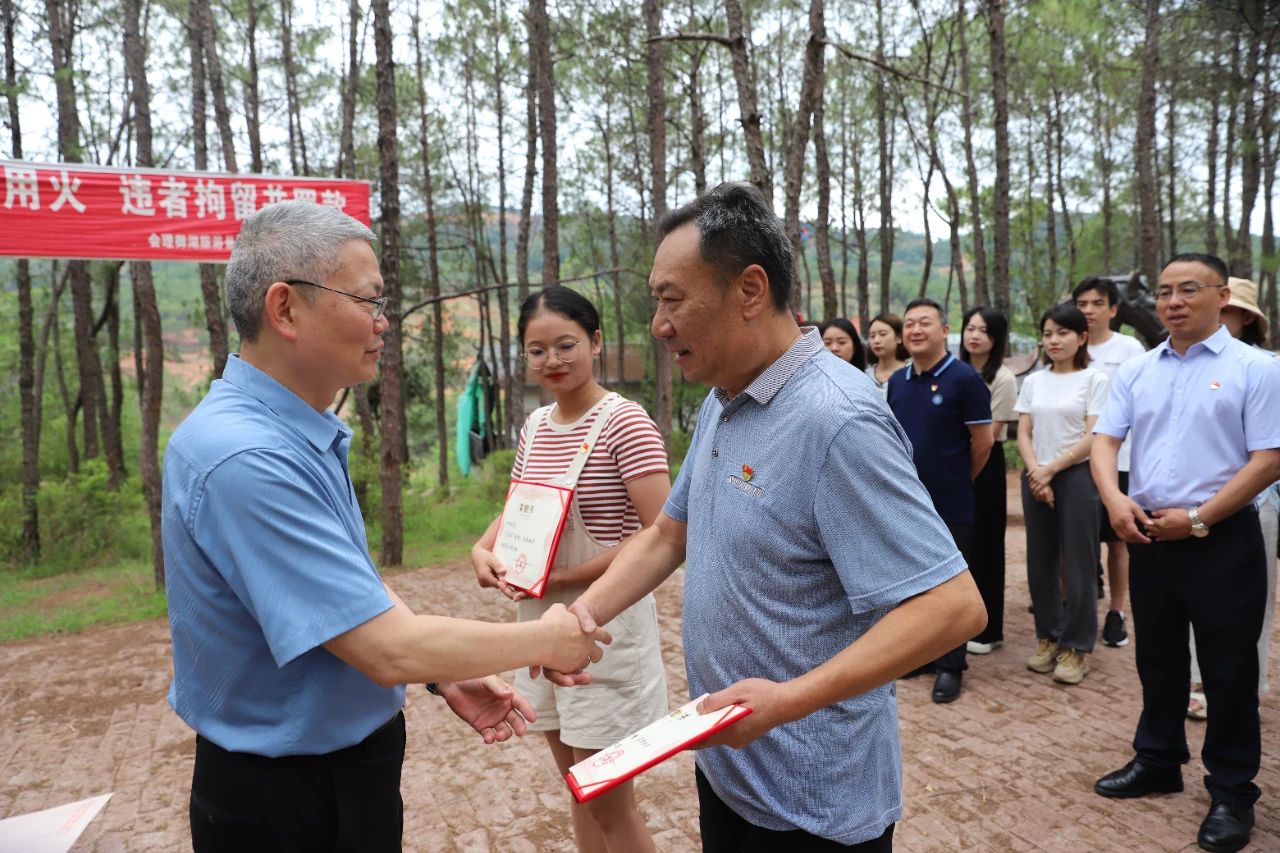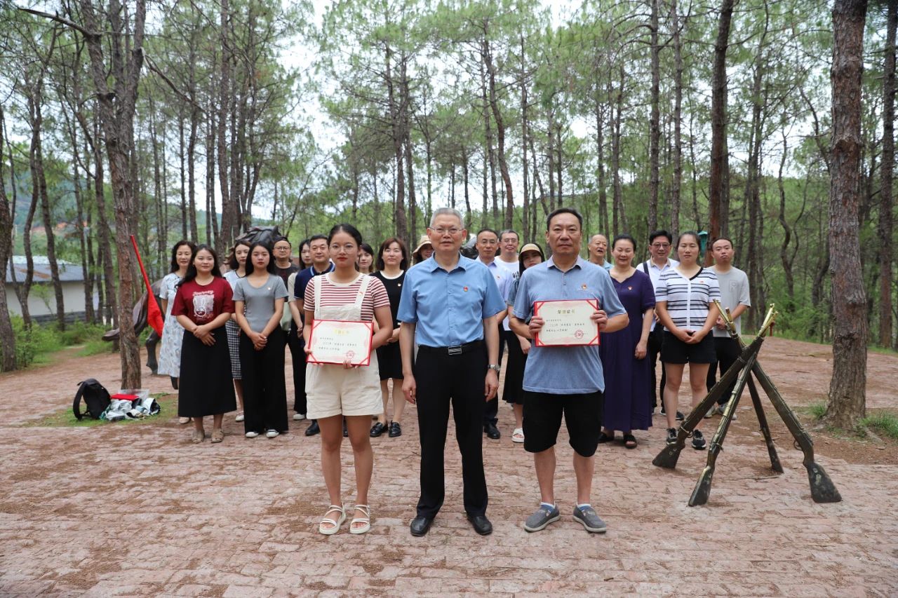 賡續紅色血脈,不忘初心使命,立功偉大新時代。黨組織還特別在這片有著紅色印記的土地上舉行了簡短的學院優秀黨員表彰儀式。學院副書記趙海林宣讀獲獎名單,學院書記、省督導專員萬輝君為優秀黨員伍亞林、曾祥明、包佩等人頒發榮譽證書,學院組織部副部長馬小林主持頒獎儀式。