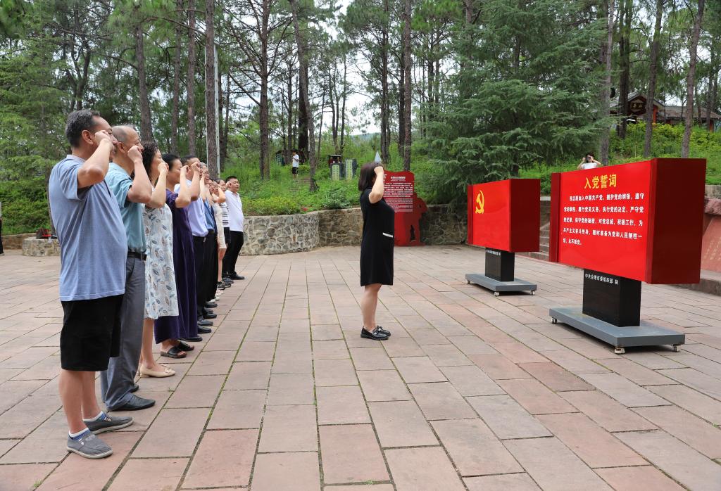 在會理會議遺址紀念石碑前,到場的全體黨員,緊握右拳,面對黨旗莊嚴地重溫入黨誓詞。站在新的歷史起點上,重溫對黨和人民許下的錚錚誓言,在入黨誓詞中感受初心與使命之重,肩負歷史與時代之責。