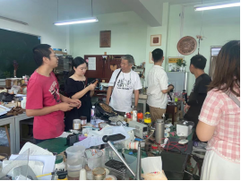 數(shù)字媒體藝術(shù)的老師非常熱情展示了他們專業(yè)的VR的大型電子設(shè)備,還帶系部教師參觀服裝設(shè)計(jì)的專業(yè)教室。在陶藝制作室中,格式傳統(tǒng)與先進(jìn)工藝的并存,在手工藝的制作過(guò)程中,看見各式不同的新的創(chuàng)作形式。之后雕刻藝術(shù)設(shè)計(jì)的劉老師帶系部教師到C區(qū)工廠參觀了雕刻藝術(shù)設(shè)計(jì)專業(yè)現(xiàn)如今非常好用的設(shè)備,之后到雕刻藝術(shù)設(shè)計(jì)專業(yè)玉石雕刻、打磨加工的專業(yè)教室參觀,劉老師詳細(xì)的講解了設(shè)備的使用方法,讓各位教師受益匪淺。參觀完攀枝花學(xué)院藝術(shù)學(xué)院的教學(xué)設(shè)備后,系部教師來(lái)到藝術(shù)學(xué)院教學(xué)樓參觀畢業(yè)設(shè)計(jì)展。之后來(lái)到視覺傳達(dá)專業(yè),參觀了他們的皮革課程的設(shè)計(jì),秦老師也分享了許多皮革方面的知識(shí)。在離開藝術(shù)學(xué)院之前,系部教師和環(huán)境藝術(shù)設(shè)計(jì)的蒲老師對(duì)今后的學(xué)習(xí)、教學(xué)進(jìn)行了交流,有很大收貨。