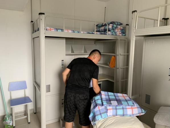 藝術(shù)設(shè)計(jì)系的男老師們和學(xué)長(zhǎng)主動(dòng)幫著拎行李,一路談笑風(fēng)生。新生細(xì)聲地叫著“學(xué)長(zhǎng)”“老師”;老師們也開心地介紹這介紹那。老師和學(xué)長(zhǎng)熱情地幫著學(xué)生打掃衛(wèi)生,整理床鋪,帶給新生滿滿的親切感。