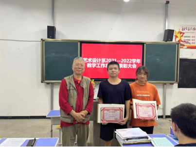 會議第二項,主任助理邱瑩宣布了優秀教師、優秀學生和三好學生名單。隨后,優秀教師、優秀學生和三好學生上臺接受了藝術設計系主任吳漢懷為他們頒發的榮譽證書,在掌聲中合影留念!