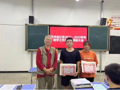 最后,主任助理邱瑩老師宣布了優秀學生和三好學生名單。優秀學生和三好學生上臺接受了藝術設計系主任吳漢懷為他們頒發的榮譽證書,在掌聲中合影留念!