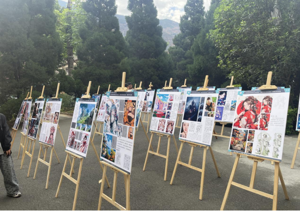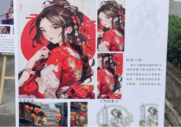 大家用自己的數位板、筆和線條與栩栩如生的色彩相結合完美刻畫出了自己作品獨特的視角精湛的技藝和深刻的內涵。充分展現了數字媒體藝術設計的魅力與創意。展覽現場吸引了眾多師生和校外嘉賓的駐足觀賞,大家紛紛為這些充滿創意的作品點贊。在展覽現場,一幅幅精美的設計作品映入眼簾,讓人目不暇接。這些作品既有傳統藝術元素的融合,也有現代科技手段的巧妙運用,充分展示了數字媒體藝術設計的多樣性和創新性。