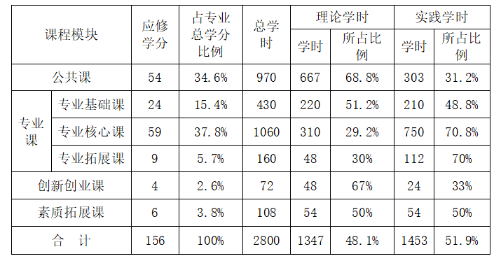 (2)辦學層次:全日制教育,??茖哟?。總學時為學時2800學時,156學分。