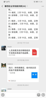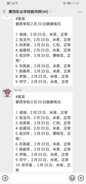 率先行動(dòng),自1月28日起,即向全校教職工發(fā)布疫情預(yù)防溫馨提示,并及時(shí)健康接龍向?qū)W校報(bào)平安。打好疫情信息收集攻堅(jiān)戰(zhàn)。