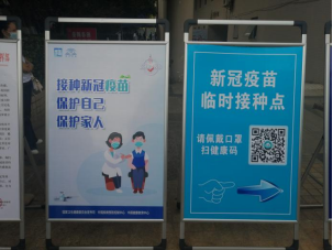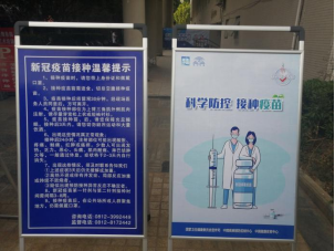 溫馨提示和接種流程等指示牌,貼心為接種學(xué)生服好務(wù)。