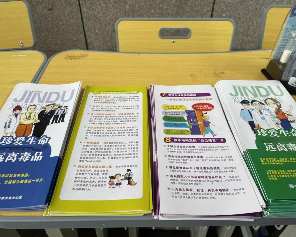 為了讓宣傳教育更加直觀深刻,活動現(xiàn)場還設(shè)置了禁毒知識展板區(qū)、仿真毒品模型展示區(qū)。同學(xué)們在民警和老師的引導(dǎo)下,有序觀看,通過圖文并茂的展板和逼真的模型,近距離認識了各種毒品的形態(tài),加深了對毒品危害的直觀感受。警方和校方工作人員還向同學(xué)們分發(fā)了禁毒宣傳手冊。