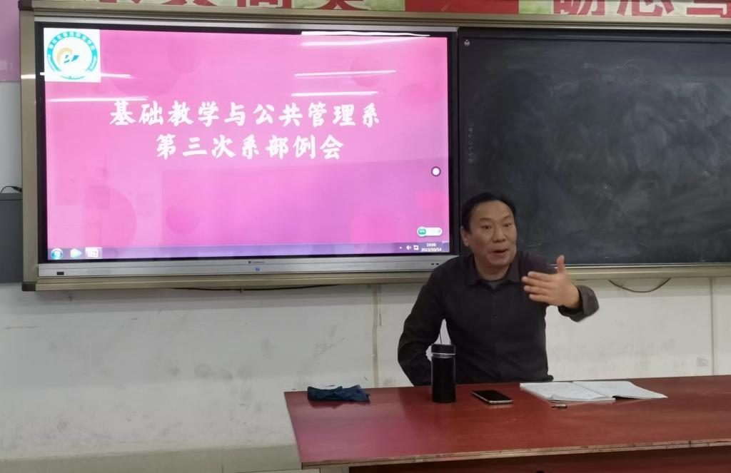為了加強(qiáng)系部管理,建立系部管理架構(gòu),基礎(chǔ)教學(xué)與公共管理系于2022年10月14日10時(shí),在教學(xué)樓210召開系部例會(huì)。本次例會(huì)基礎(chǔ)系全體教師參加,系主任伍亞林主持。