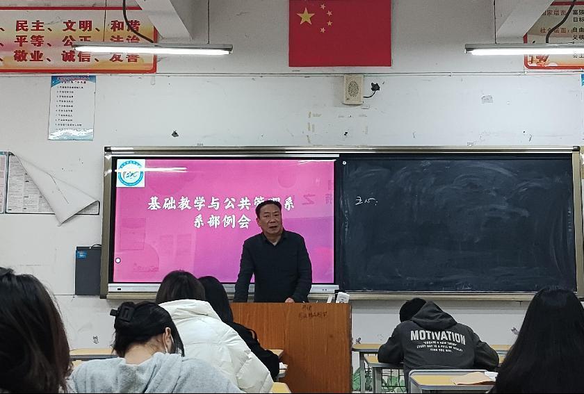 為了加強(qiáng)教師對各專業(yè)人才培養(yǎng)理念深度認(rèn)識,引領(lǐng)教學(xué)提質(zhì),基礎(chǔ)教學(xué)與公共管理系于12月7日,在教學(xué)樓212召開教學(xué)例會。會議由系主任伍亞林主持,基礎(chǔ)教學(xué)與公共管理系全體教師參加。