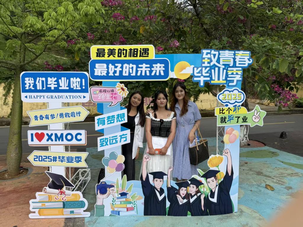 校園里,創意畢業打卡點成為畢業生們的“青春留念地”。“畢業證書”造型展板,寫滿對畢業生的祝福;“最美的相遇,最好的未來”主題打卡區,匯聚“我們畢業啦”“致青春畢業季”等標語,同學和老師們在此定格美好,用笑容紀念校園歲月,讓青春身影與校園風景、祝福話語相融。