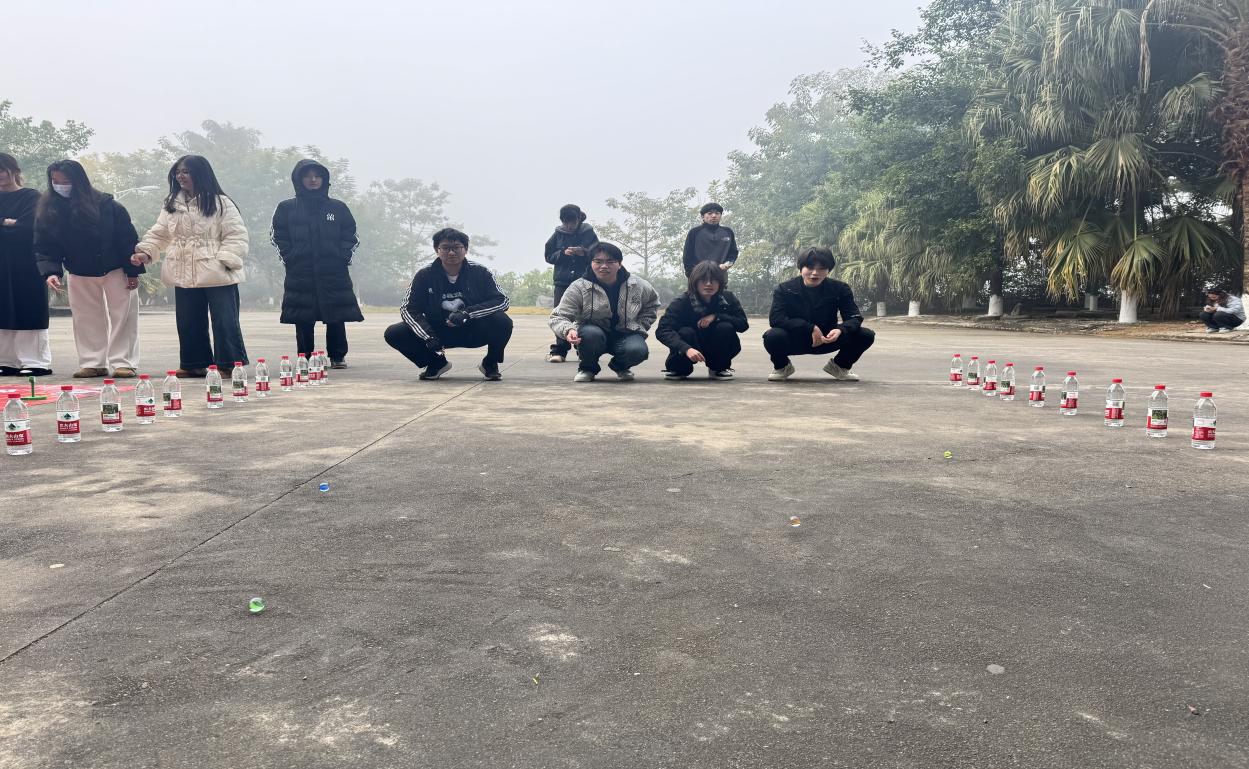 活動開幕式簡短而熱烈,學院老師登臺致辭,向師生送上新年祝福,并詳細講解了活動規則與安全須知,鼓勵大家積極參與、樂享競技。本次游園會精心設置了經典套圈奪寶、傳統投壺競技、趣味投籃、彈珠滾滾樂、盲人敲鑼5個特色項目攤位,每個攤位均配備2名指導教師和2名學生負責組織與記錄,確保活動有序開展。