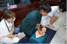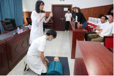 猝死在生活工作中并不少見,猝死患者如果得到及時的心肺復蘇至少一半的人群能夠得到救治。心肺復蘇術就是針對心博驟停病人的一種行之有效的搶救技術,通過心肺復蘇術使病人立即恢復自主呼吸和心跳,因此實施心肺復蘇要爭分奪秒。徐玲醫生為大家講解了了解心臟驟停的原因,掌握心臟驟停后的治療,基礎的步驟講解后,由王中華、胡麗莎醫生的配合為大家演示了具體操作。