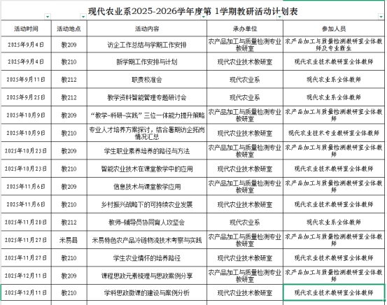 現代農業系2025-2026學年度第 1學期教研活動計劃表
