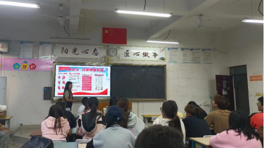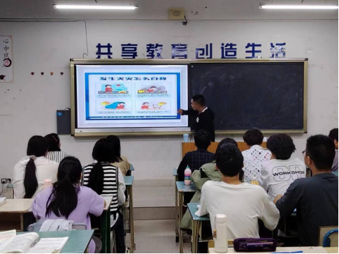在班會上,由各班團支書為班級同學教解消防知識,從日常消防安全到消防器材的使用方法一一為大家講解,同學們積極與團支書互動,現場氣氛活躍。