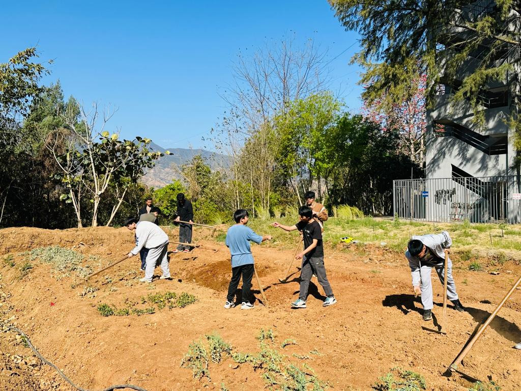 隨著開墾工作的進行,學生們開始進行澆水工作。他們使勁拽動水管,將清澈的水流灌入土地,滋潤了干涸的土地,讓土壤更具生機。他們學會了如何控制水流的大小和方向,不僅練就了技術,還鍛煉了團隊協作能力。