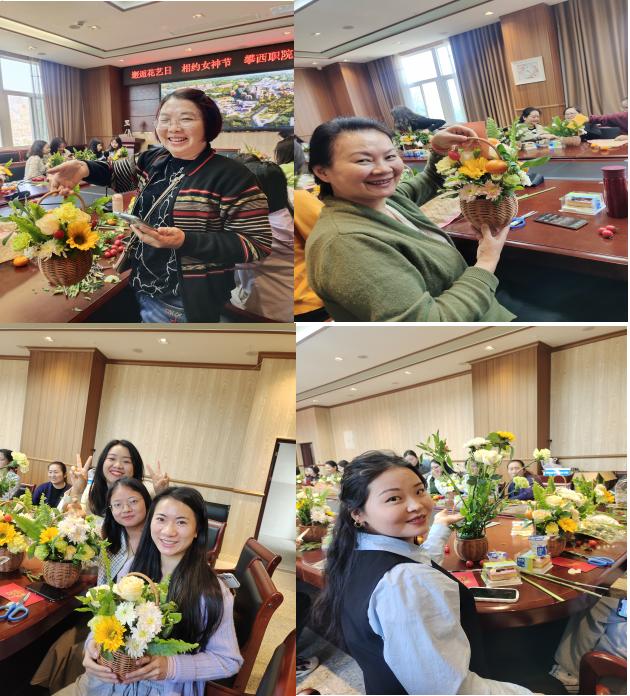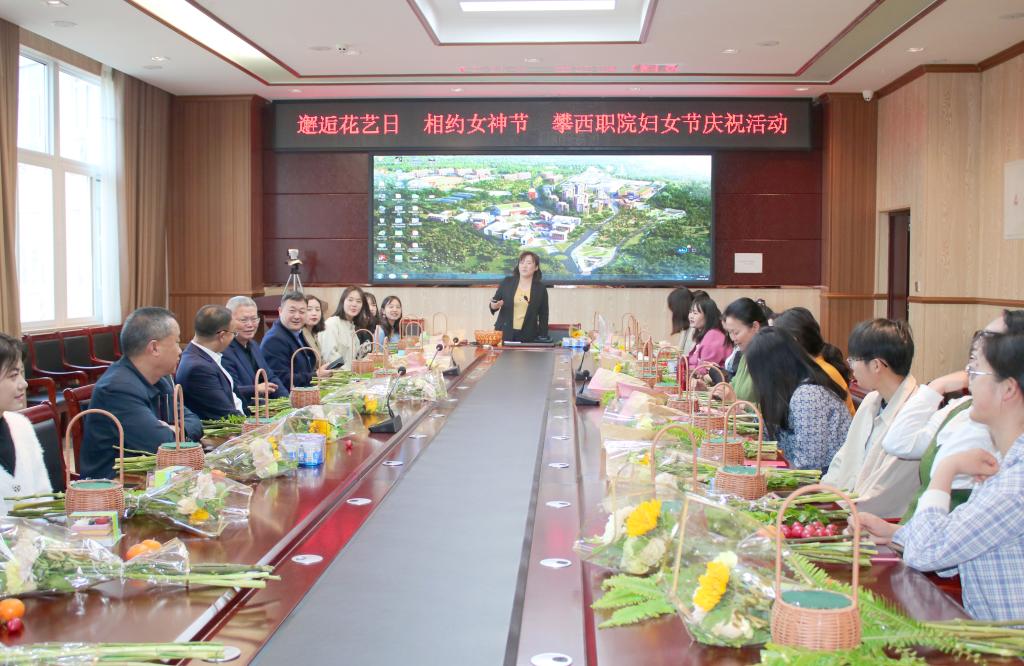 為慶祝第113個國際婦女節,學院于2023年3月8日上午9:00在二實訓樓四樓會議室開展“邂逅花藝日,相約女神節”慶祝活動,學院領導蒞臨指導,全體女職工出席,工會主席馬小林主持活動。