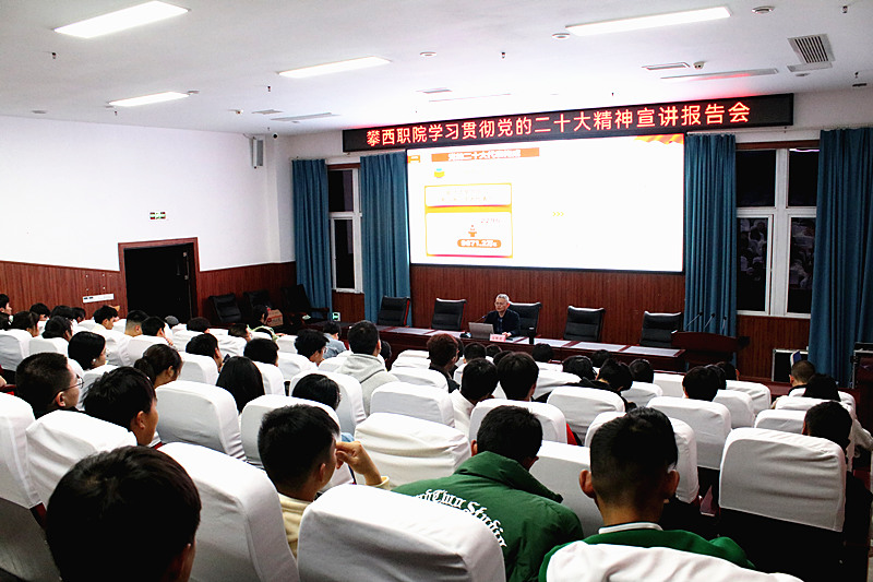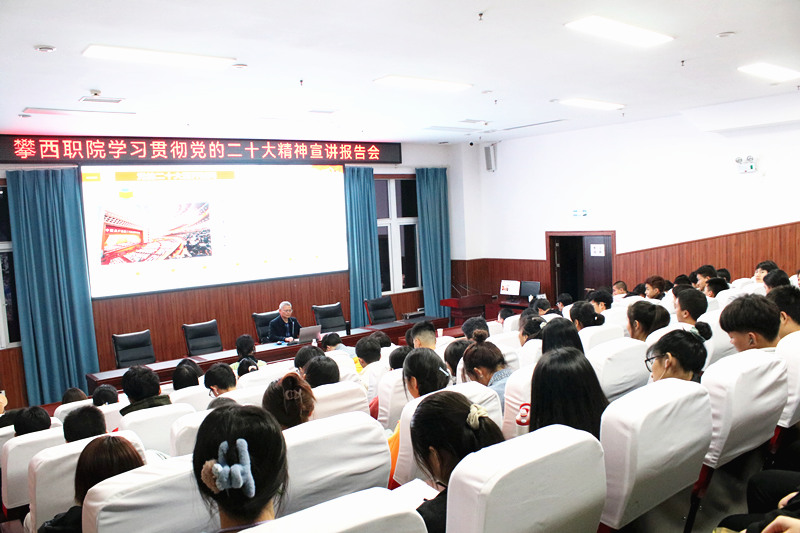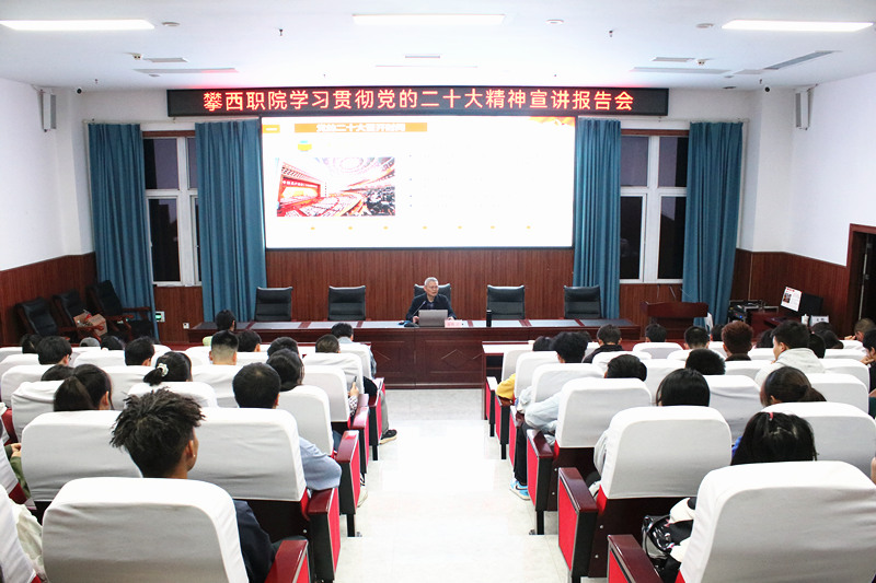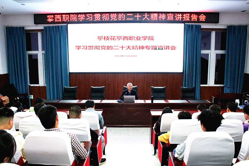 11月29日晚上,攀枝花攀西職業(yè)學院在二實訓樓階梯教室召開學習貫徹黨的二十大精神專題宣講報告會。米易縣委學習貫徹黨的二十大精神宣講隊成員、攀西職院書記、省督導(dǎo)專員萬輝君教授為學生作宣講報告。各班輔導(dǎo)員及全校學生參加報告會。
