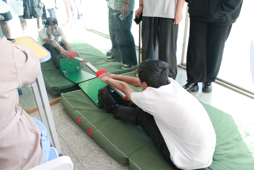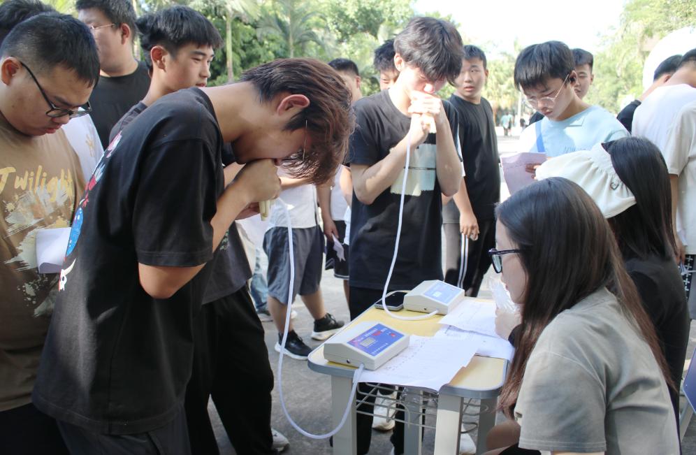 在學生處的統一指揮及測試教師、學生志愿者的密切配合下,各系部學生分批分組、按照預定時間和地點進行有序測試。測試中,同學們精神飽滿、嚴謹認真,每一個項目都按要求積極對待。大家相互鼓勁,相互比拼,以不服輸的精神全身心投入到測試中,盡自己最大的努力,將自己最好、最真實的成績充分展現。工作人員嚴謹細致、認真負責記錄每一項測試成績。體測場面熱鬧而有序,溫馨而和諧。