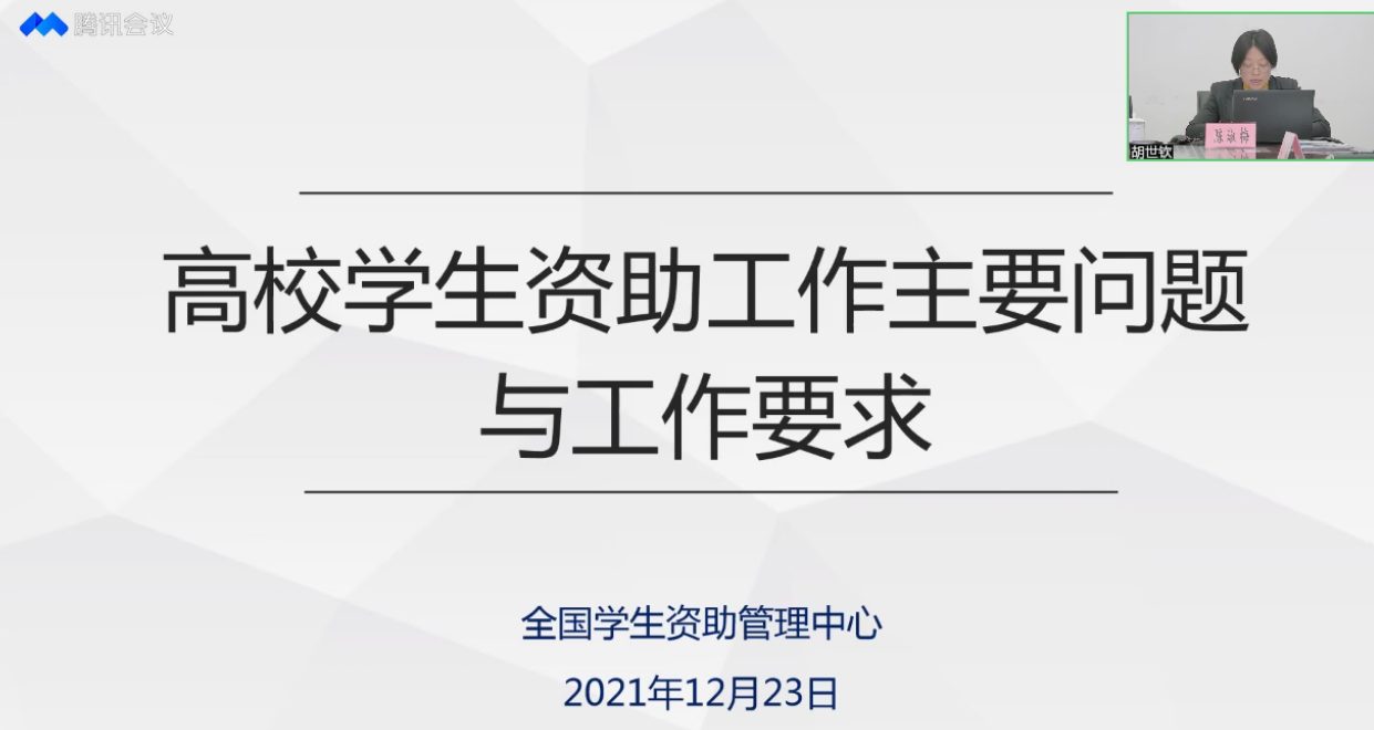 為進一步貫徹落實好國家資助政策,規(guī)范高校學生資助工作,創(chuàng)新資助工作方式方法,提升學生資助工作人員業(yè)務水平,教育部全國學生資助管理中心于12月23日下午以視頻會議的形式組織召開了2021年高校資助業(yè)務線上培訓會。我校學生資助工作辦公室工作人員、學生處負責學生資助工作的人員參加了培訓。