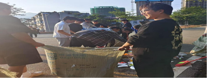 有的定格了同學(xué)主動清理教學(xué)樓垃圾的身影。