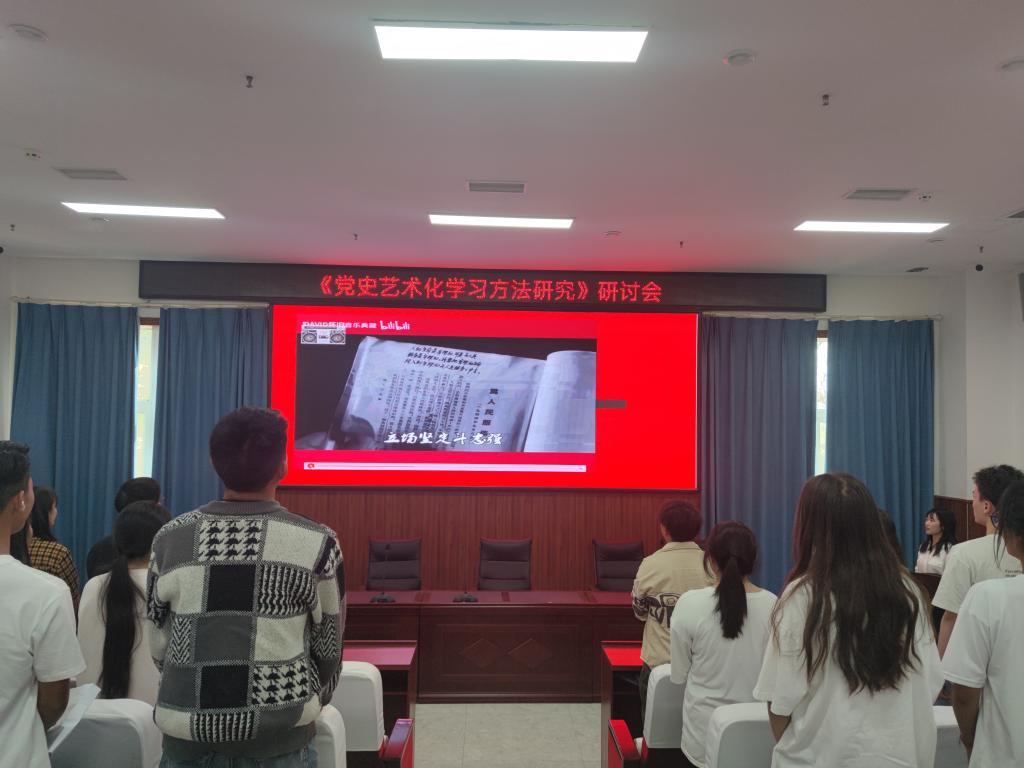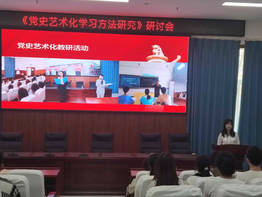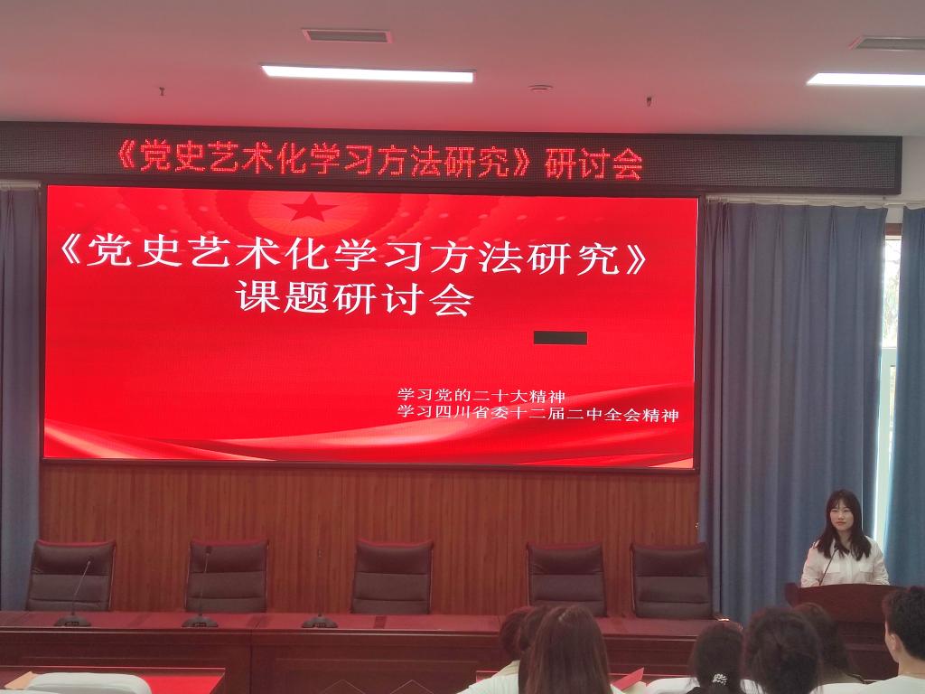 本次研討會圍繞黨史藝術化學習方法研究、黨的二十大和四川省黨委召開的十二屆二中全會展開。首先對黨史藝術化學習方法研究的成果進行大致的匯報。此次黨史藝術化課題研究,以教師為指導,學生全員參與。在收集與整理黨史的資料過程中,面對海量信息,學生多角度、多途徑、多渠道進行資料的收集與整理,使學生對大數據時代形成了初步概念,初步體驗到大數據時代的獨特魅力。通過此次黨史實踐活動,學生深入透徹了解黨史、新中國史,讓學生牢記紅色政權是怎么來的、新中國是怎么建立起來的,旨在讓學生懂得黨的初心和使命之可貴,理解堅守黨的初心和使命之重要,深刻理解和感悟中國共產黨為什么能;馬克思主義為什么行;社會主義為什么好,增強對中國特色社會主義的堅定信念。學習黨史也是學習馬克思主義中國化的發展歷程,馬克思主義是我們立黨立國、興黨興國的根本指導思想。