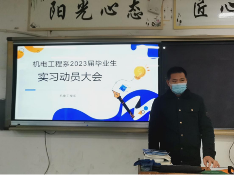 2022年12月28日,機電工程系在教學樓210召開實習動員大會。機電工程系主任助理謝韋葦、機電工程系汽車檢測與維修技術專業負責人劉萬禮、機電工程系輔導員樊季東和2023屆畢業生出席會議。